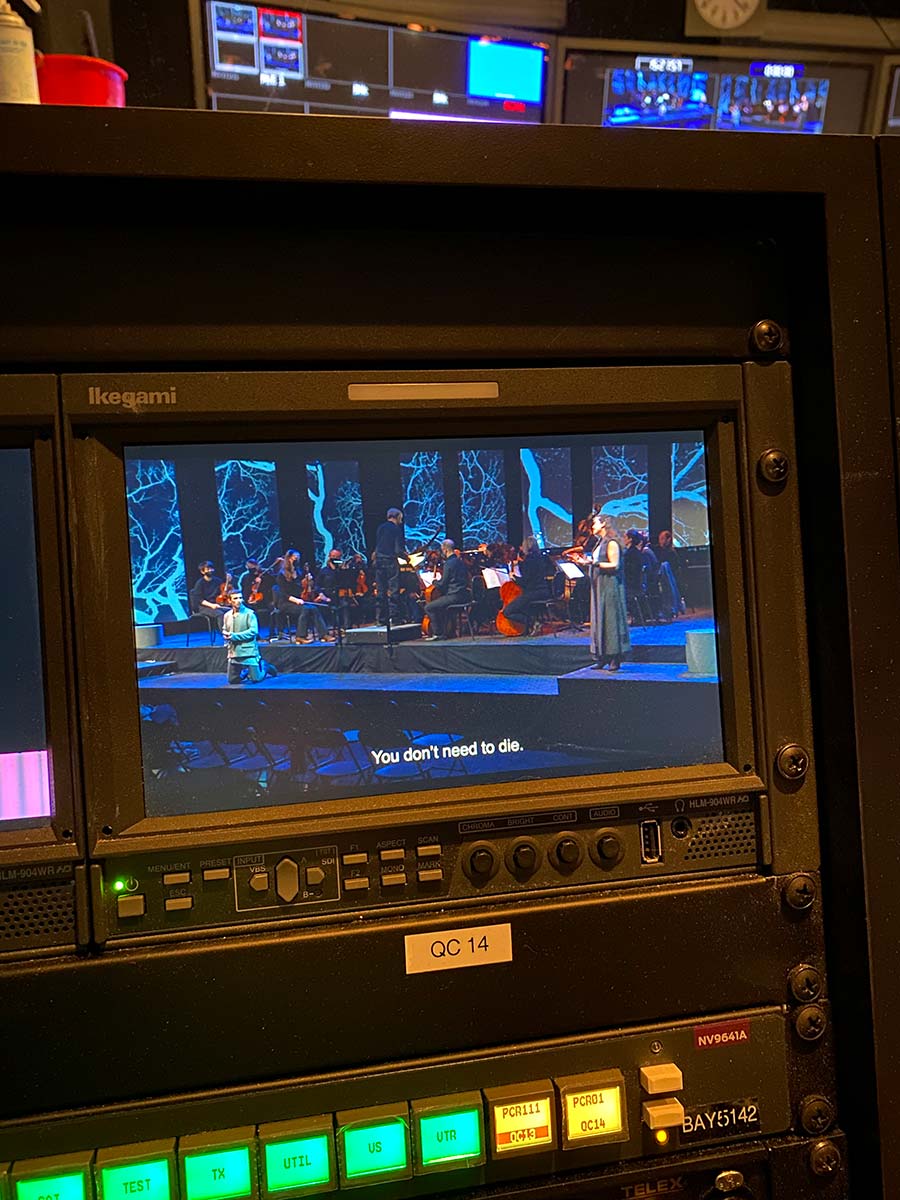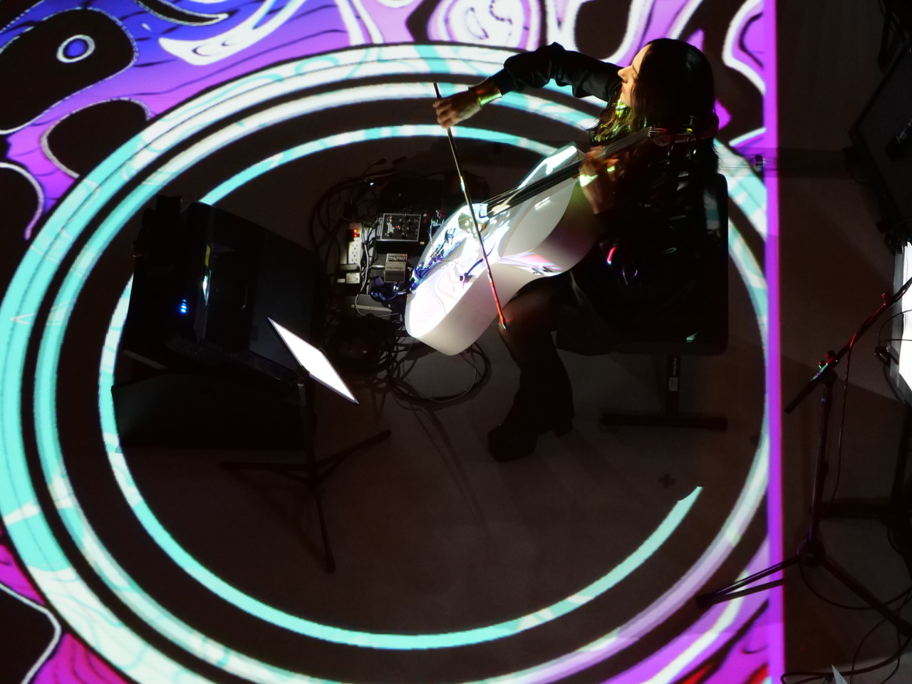 This performance of “Bowie Symphonic: Blackstar” was accompanied by real-time animations created by Secret Portal VR. All the animations were perfectly aligned to the live music using ConcertCue.