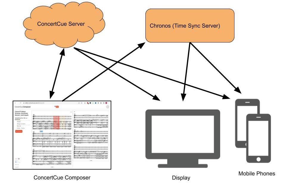 During the concert, a human operator listens to the live music and “taps the downbeats” to create the real-time alignment. This job is akin to a score-reader, or a musician who must follow the conductor along with the rest of the orchestra.