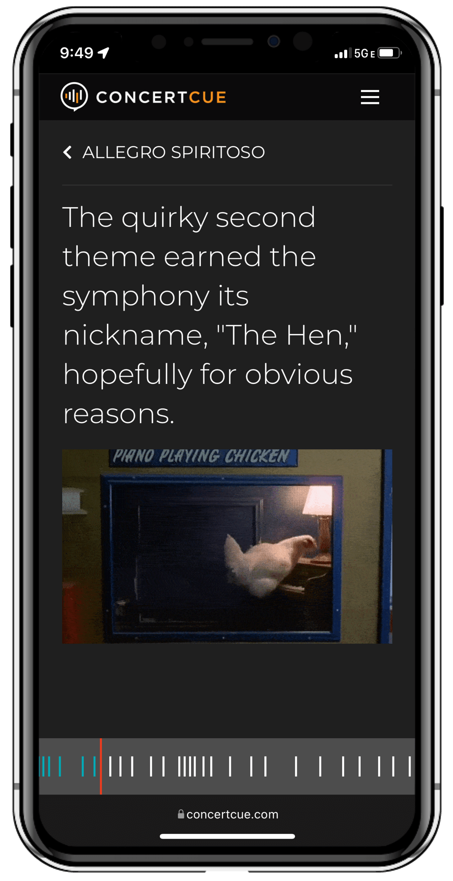 - Create the music-aligned content (the “cues”) for each movement, by placing them at specific locations with respect to the score and/or reference audio.
